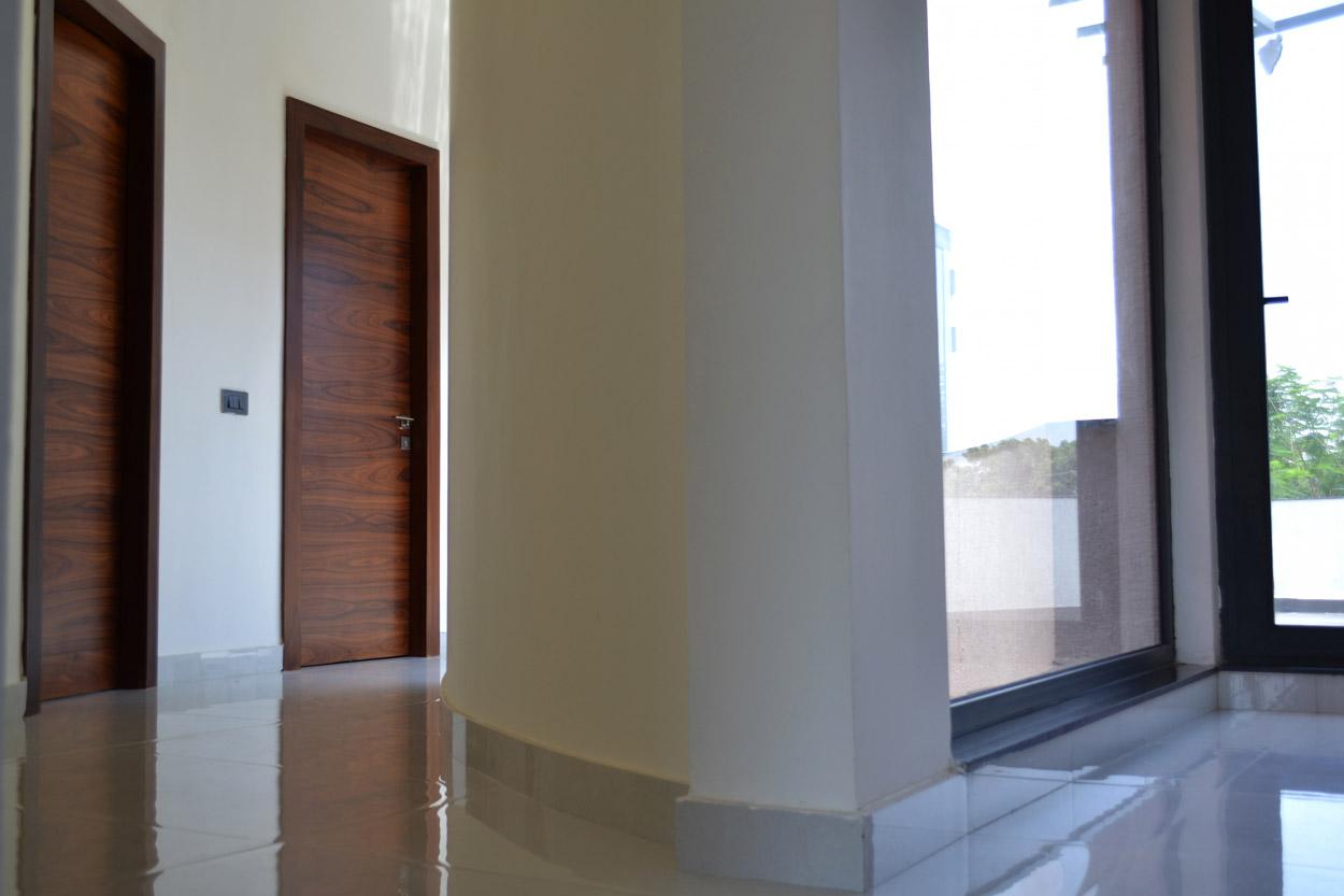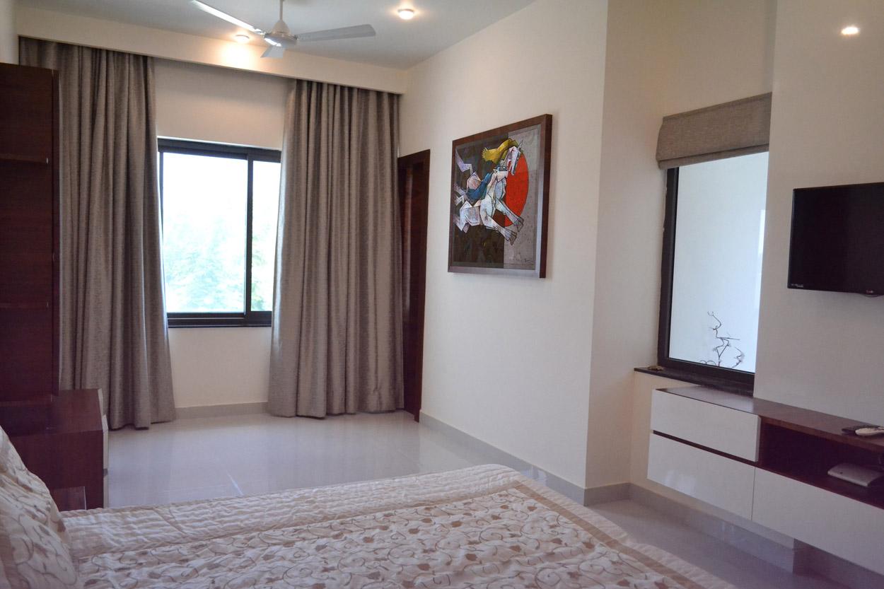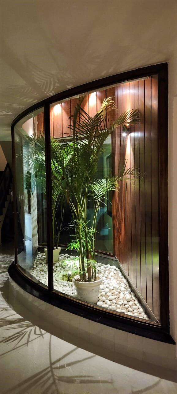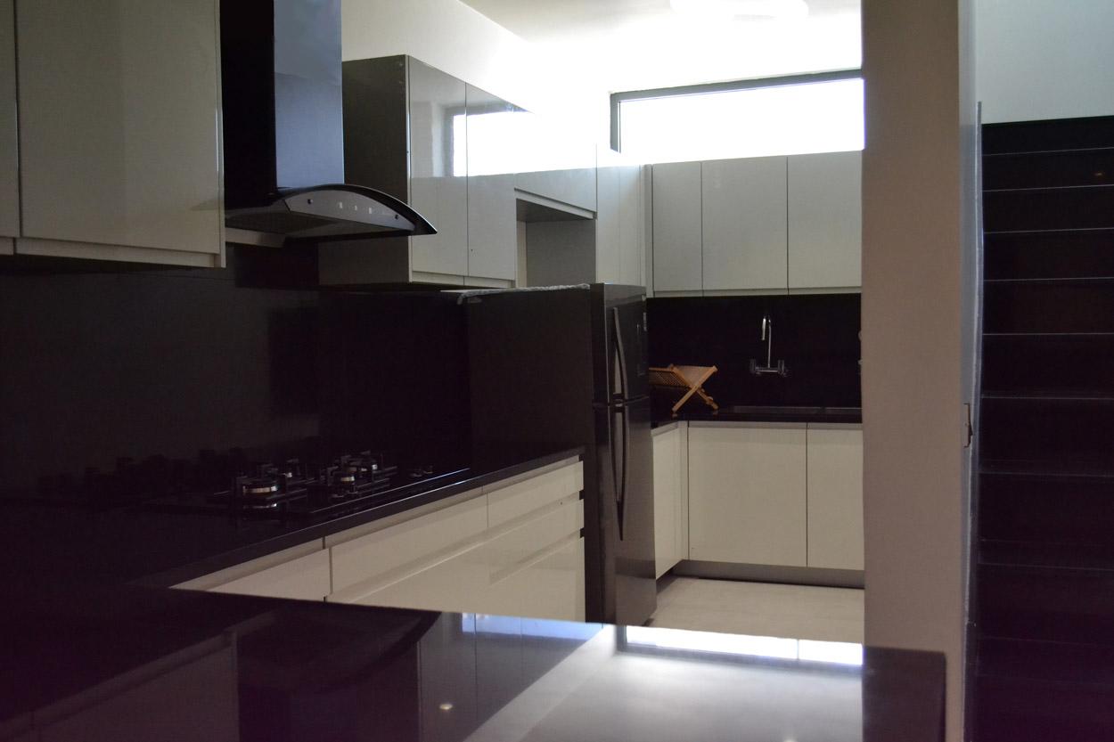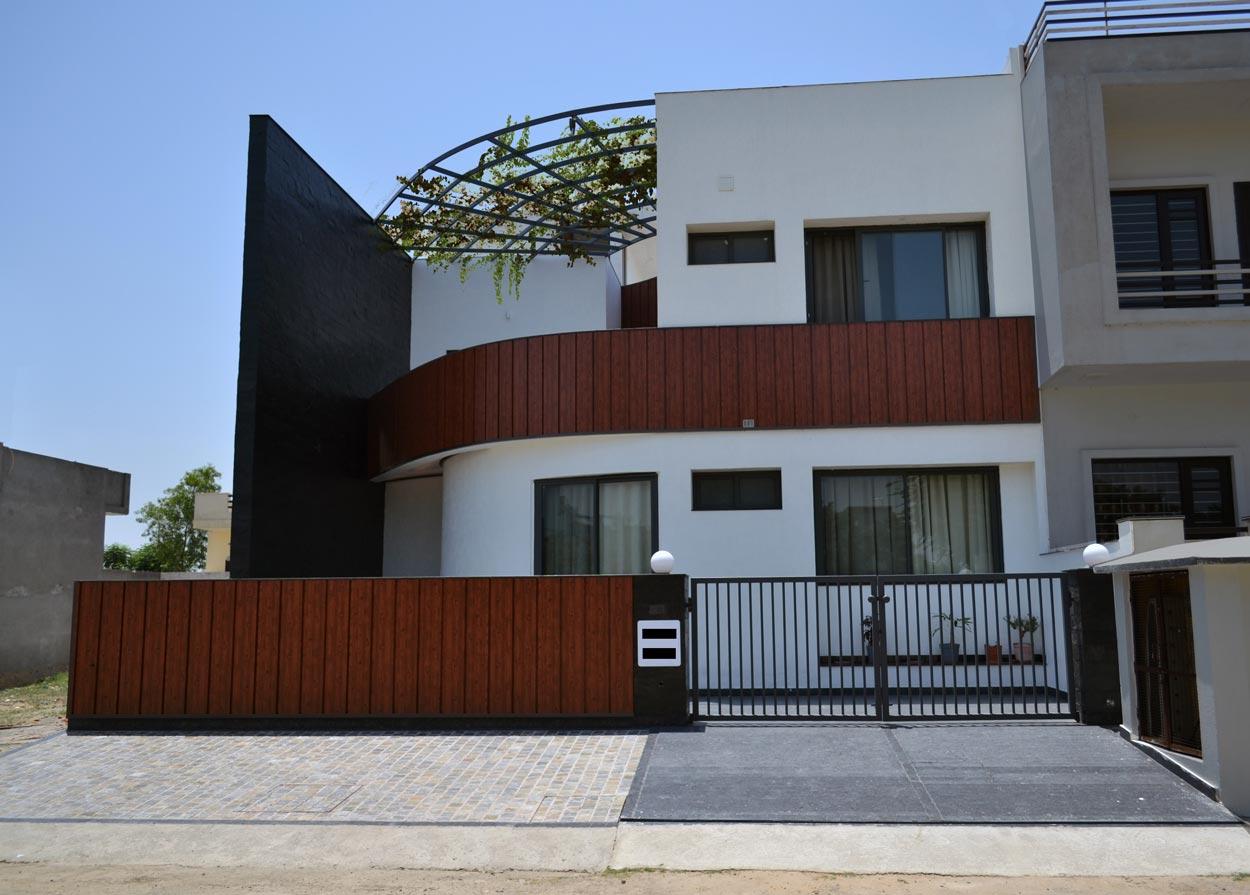 Gyre House came to TRBC in the form of a challenge to bend the perception of the kind of residence that can be achieved in a limited plot size. The challenges were multi-fold. The elevation was perceptually expanded by swooping in the corner (a visual trick), and the spaces inside respond to the resulting curve. In order to not compromise on the parking up front, an eye shaped void was scooped out of the built-mass vertically and a garden created in the belly of the house, creating the opportunity for each room to respond to the curvature thus generated, in their own way. A nouveau-dramatic palette was employed to play up the interiors, hemmed-in by cherry tones and simple black granite.