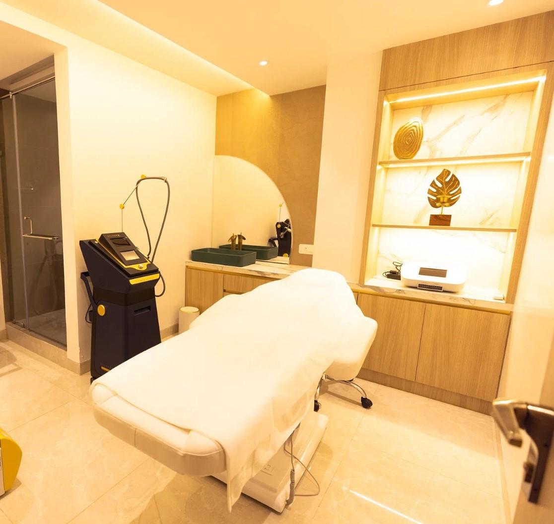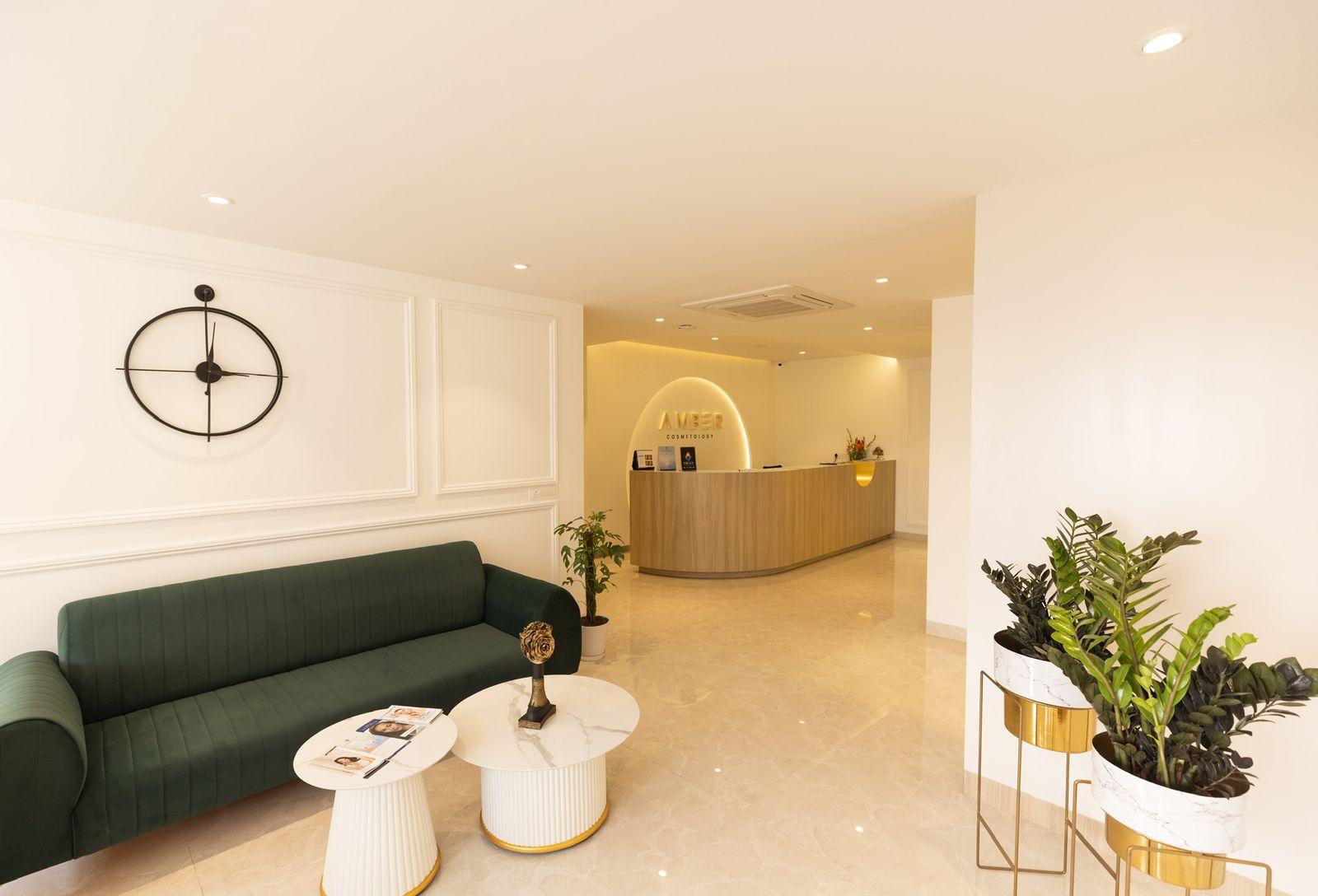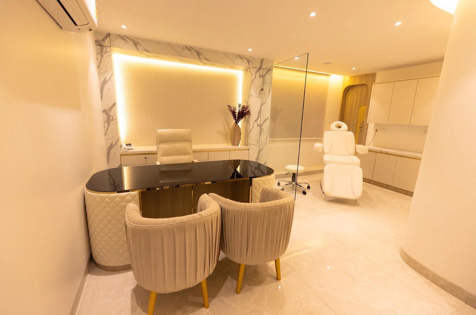 TRBC was commissioned to sculpt a tunnel-like volume in a commercial block into a fully functional cosmetology clinic with a pharmacy, consultation rooms and different sets of treatment rooms. The brief was to target a high-profile clientele and project a luxuriant and indulgent experience. In a departure from our minimal approach, we tried to integrate a bit of curated excess, detail and elements that evoke glint and glamour. This was toned down and contrasted with jewel tones in the upholstery. The sharpness of spaces was toned down by rounding off the passages that lead into rooms on either side.