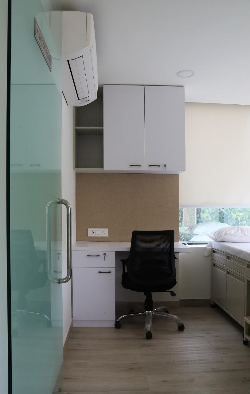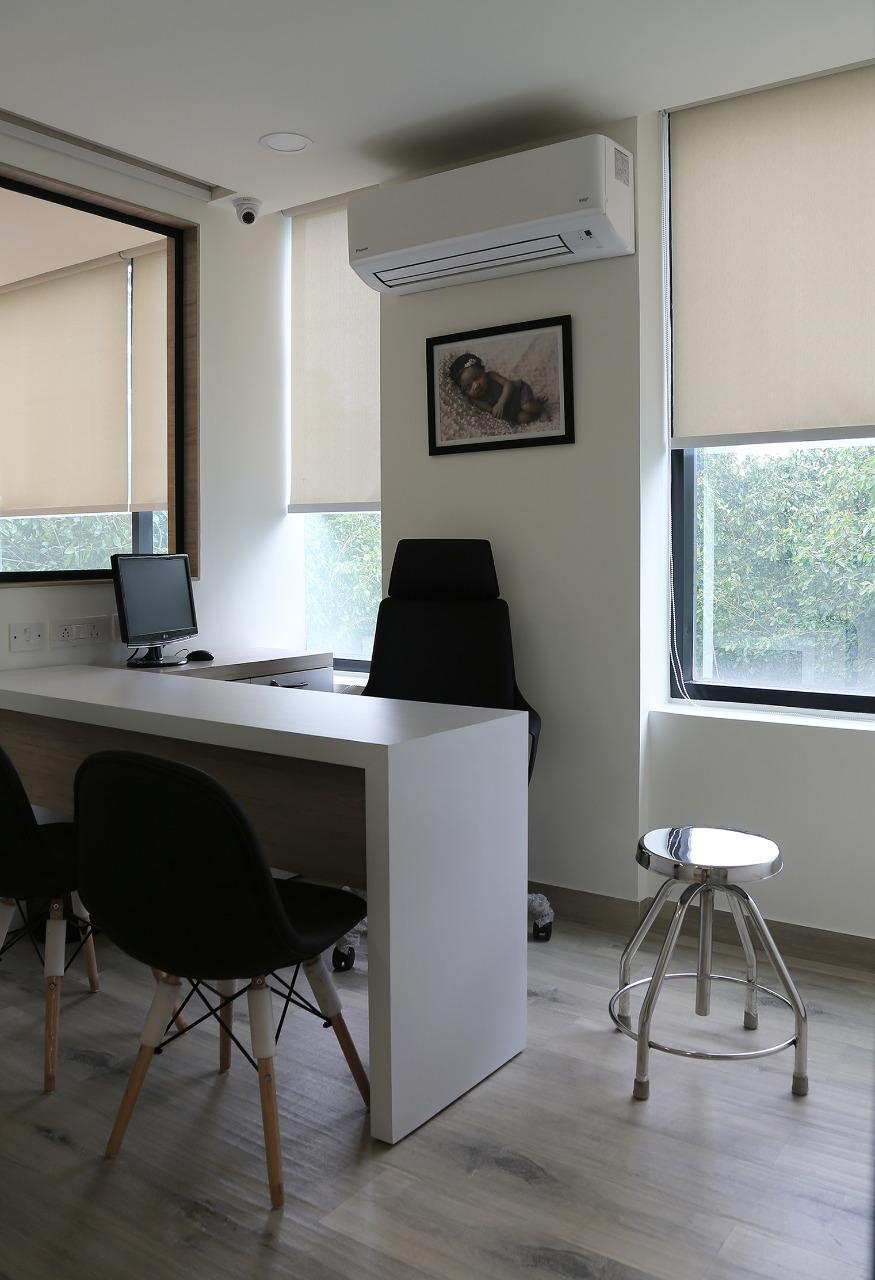 TRBC was approached to design a contemporary IVF center in Delhi, replete with sterile laboratories and a state of the art Operation Theater. Operating within stringent ICMR guidelines and a constricted bus-like floor plan, the aim was to create a sense of flow by expressing the feminine energy and exploring the belly-like qualities of catchment spaces. A light, airy and neutral palette, with a dash of orangey hope (with graphic design resonance) serves to brighten the space, by acknowledging the desperate hunt for solutions, with which a couple makes its way to such a facility.